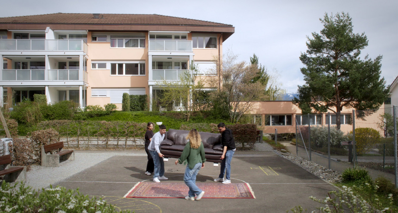 Stück für Stück wird ein familiäres Wohnzimmer aus der Privatheit in die Öffentlichkeit getragen: Teppich und Möbel, Menschen nehmen Platz, es gibt heißen Çay. Selin und ihre Geschwister Hêlîn, Firat und Serhat sind in einem kleinen Schweizer Dorf aufgewachsen. Sie teilen Erinnerungen, erzählen von Fremdheitserfahrungen und Ausgrenzung, von Wut und Eigensinn, vom Zusammenstehen und dem Beharren auf einer eigenen Geschichte. Ein Akt der filmischen Sichtbarmachung der Selbstbehauptung.